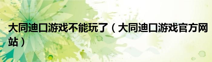 大同迪口游戏不能玩了(大同迪口游戏官方网站)