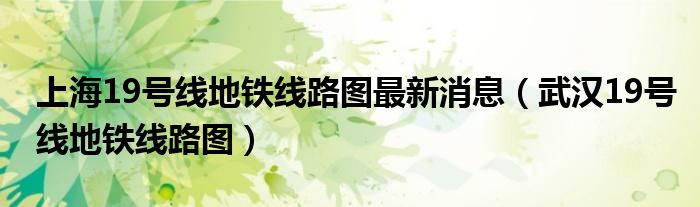 关于上海19号线地铁线路图最新消息,武汉19号线地铁线路图这个很多人还不知道,今天菲菲来为大家解答以上的问题,现在让我们一起来看看吧!