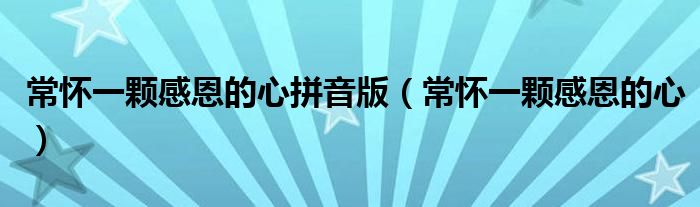 关于常怀一颗感恩的心拼音版,常怀一颗感恩的心这个很多人还不知道,今天菲菲来为大家解答以上的问题,现在让我们一起来看看吧!