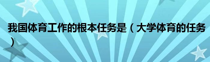 关于我国体育工作的根本任务是,大学体育的任务这个很多人还不知道,今天菲菲来为大家解答以上的问题,现在让我们一起来看看吧!