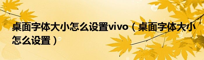 关于桌面字体大小怎么设置vivo,桌面字体大小怎么设置这个很多人还不知道,今天菲菲来为大家解答以上的问题,现在让我们一起来看看吧!
