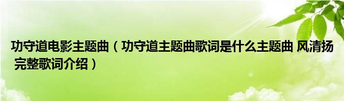 关于功守道电影主题曲,功守道主题曲歌词是什么主题曲 风清扬 完整歌词介绍这个很多人还不知道,今天菲菲来为大家解答以上的问题,现在让我们一起来看看吧!