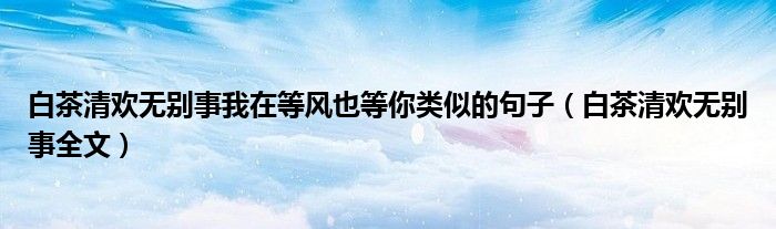 关于白茶清欢无别事我在等风也等你类似的句子,白茶清欢无别事全文这个很多人还不知道,今天菲菲来为大家解答以上的问题,现在让我们一起来看看吧!