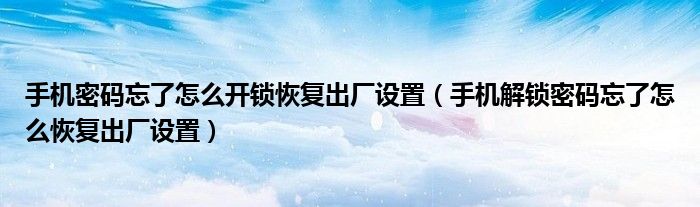 关于手机密码忘了怎么开锁恢复出厂设置,手机解锁密码忘了怎么恢复出厂设置这个很多人还不知道,今天菲菲来为大家解答以上的问题,现在让我们一起来看看吧!