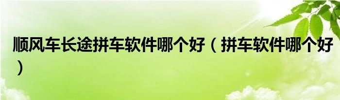 顺风车长途拼车软件哪个好(拼车软件哪个好)