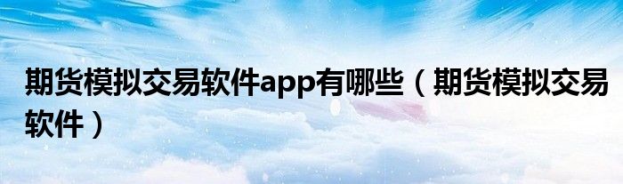 关于期货模拟交易软件app有哪些,期货模拟交易软件这个很多人还不知道,今天菲菲来为大家解答以上的问题,现在让我们一起来看看吧!