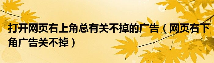 大家好,小联来为大家解答以上的问题。打开网页右上角总有关不掉的广告,网页右下角广告关不掉这个很多人还不知道,现在让我们一起来看看吧!