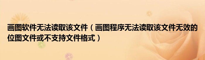 关于画图软件无法读取该文件,画图程序无法读取该文件无效的位图文件或不支持文件格式这个很多人还不知道,今天菲菲来为大家解答以上的问题,现在让我们一起来看看吧!