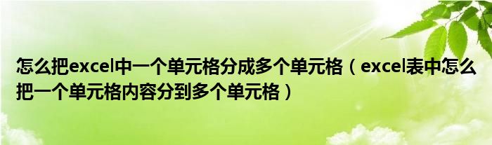 关于怎么把excel中一个单元格分成多个单元格,excel表中怎么把一个单元格内容分到多个单元格这个很多人还不知道,今天菲菲来为大家解答以上的问题,现在让我们一起来看看吧!