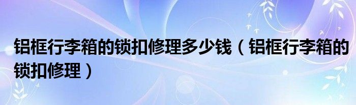 大家好,我是小科,我来为大家解答以上问题。铝框行李箱的锁扣修理多少钱,铝框行李箱的锁扣修理很多人还不知道,现在让我们一起来看看吧!