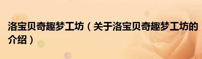 洛宝贝奇趣梦工坊(关于洛宝贝奇趣梦工坊的介绍)