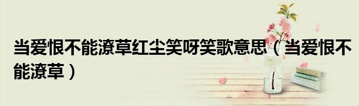 大家好,我是小科,我来为大家解答以上问题。当爱恨不能潦草红尘笑呀笑歌意思,当爱恨不能潦草很多人还不知道,现在让我们一起来看看吧!