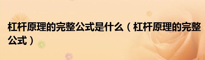 各位网友们好,我是编辑小夏,为大家解答杠杆原理的完整公式是什么,杠杆原理的完整公式问题。一起往下看看