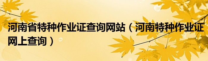 大家好,小联来为大家解答以上的问题。河南省特种作业证查询网站,河南特种作业证网上查询这个很多人还不知道,现在让我们一起来看看吧!