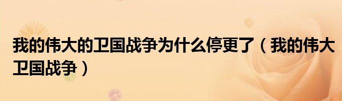 大家好,小联来为大家解答以上的问题。我的伟大的卫国战争为什么停更了,我的伟大卫国战争这个很多人还不知道,现在让我们一起来看看吧!