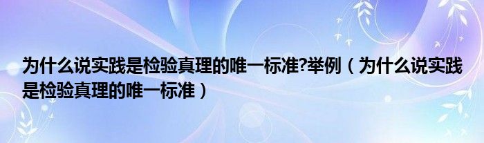 大家好,我是小科,我来为大家解答以上问题。为什么说实践是检验真理的唯一标准?举例,为什么说实践是检验真理的唯一标准很多人还不知道,现在让我们一起来看看吧!