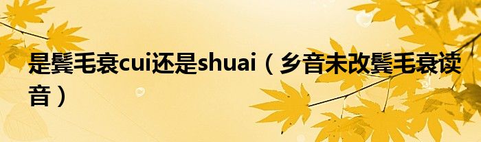 大家好,我是小科,我来为大家解答以上问题。是鬓毛衰cui还是shuai,乡音未改鬓毛衰读音很多人还不知道,现在让我们一起来看看吧!