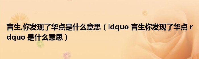 大家好,小联来为大家解答以上的问题。盲生,你发现了华点是什么意思,ldquo 盲生你发现了华点 rdquo 是什么意思这个很多人还不知道,现在让我们一起来看看吧!