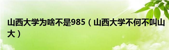 大家好,我是小科,我来为大家解答以上问题。山西大学为啥不是985,山西大学不何不叫山大很多人还不知道,现在让我们一起来看看吧!