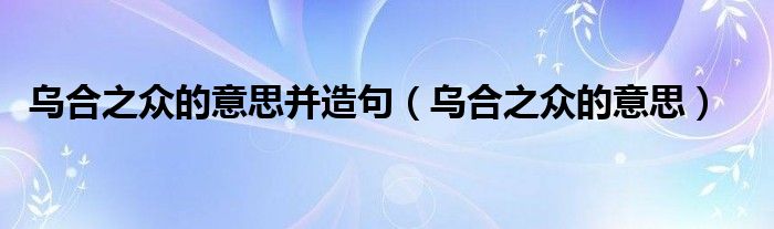 大家好,我是小科,我来为大家解答以上问题。乌合之众的意思并造句,乌合之众的意思很多人还不知道,现在让我们一起来看看吧!