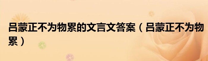 关于吕蒙正不为物累的文言文答案,吕蒙正不为物累这个很多人还不知道,今天菲菲来为大家解答以上的问题,现在让我们一起来看看吧!