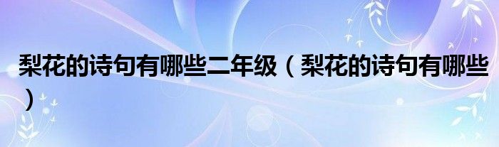 大家好,小晋来为大家解答以下问题,关于梨花的诗句有哪些二年级,梨花的诗句有哪些很多人还不知道,今天让我们一起来看看吧!