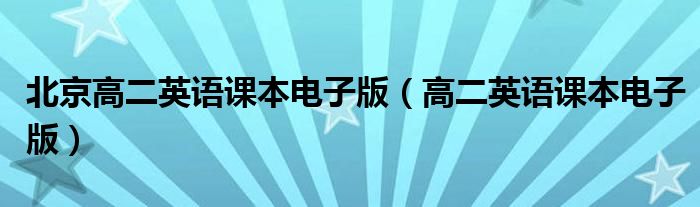 关于北京高二英语课本电子版,高二英语课本电子版这个很多人还不知道,今天菲菲来为大家解答以上的问题,现在让我们一起来看看吧!