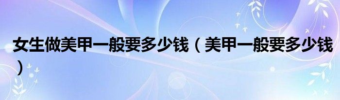 2、一次美甲大概要50元到100元。每个地区的消费水平不一样,美甲所用的材料也不一样,所以价格会相差很大。如果当地消费水平比较低的话,成本会比较低,在50元左右,但是对于消费者来说,成本会比较高,可能在100元左右。修指甲是改善指甲难看外观的常用方法。