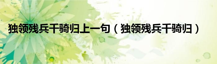 大家好,小晋来为大家解答以下问题,关于独领残兵千骑归上一句,独领残兵千骑归很多人还不知道,今天让我们一起来看看吧!