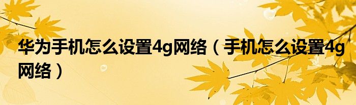 华为手机怎么设置4g网络(手机怎么设置4g网络)