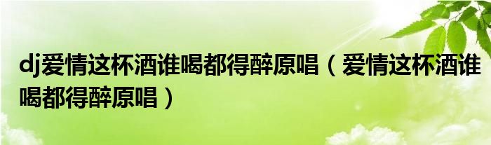 大家好,小晋来为大家解答以下问题,关于dj爱情这杯酒谁喝都得醉原唱,爱情这杯酒谁喝都得醉原唱很多人还不知道,今天让我们一起来看看吧!