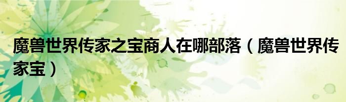关于魔兽世界传家之宝商人在哪部落,魔兽世界传家宝这个很多人还不知道,今天菲菲来为大家解答以上的问题,现在让我们一起来看看吧!