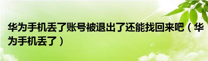 大家好,小晋来为大家解答以下问题,关于华为手机丢了账号被退出了还能找回来吧,华为手机丢了很多人还不知道,今天让我们一起来看看吧!