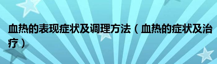 关于血热的表现症状及调理方法,血热的症状及治疗这个很多人还不知道,今天菲菲来为大家解答以上的问题,现在让我们一起来看看吧!