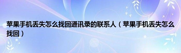 苹果手机丢失怎么找回通讯录的联系人(苹果手机丢失怎么找回)
