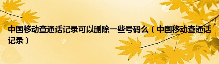 大家好,来宝来为大家解答以下问题,中国移动查通话记录可以删除一些号码么,中国移动查通话记录很多人还不知道,今天让我们一起来看看吧!