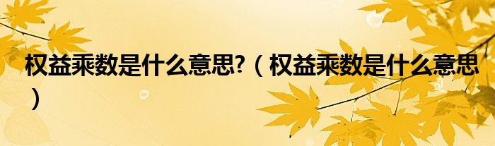 最佳答案关于权益乘数是什么意思?,权益乘数是什么意思这个很多人还不知道,今天菲菲来为大家解答以上的问题,现在让我们一起来看看吧!1、答案:B 权益乘数表示企业的负债程度,权益乘数越大,企业负债程度越高。2、公式:权益乘数=1/(1-资产负债率)=总资产/权益。本文到此分享完毕,希望对大家有所帮助。
