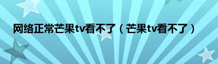 大家好,来宝来为大家解答以下问题,网络正常芒果tv看不了,芒果tv看不了很多人还不知道,今天让我们一起来看看吧!