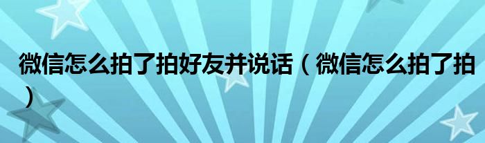 大家好,来宝来为大家解答以下问题,微信怎么拍了拍好友并说话,微信怎么拍了拍很多人还不知道,今天让我们一起来看看吧!
