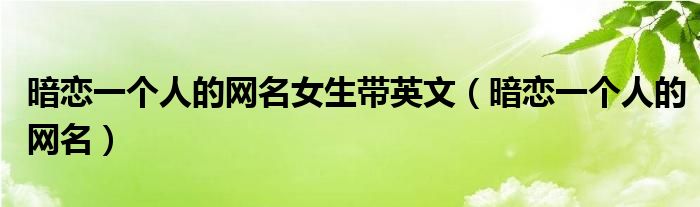 大家好,小晋来为大家解答以下问题,关于暗恋一个人的网名女生带英文,暗恋一个人的网名很多人还不知道,今天让我们一起来看看吧!