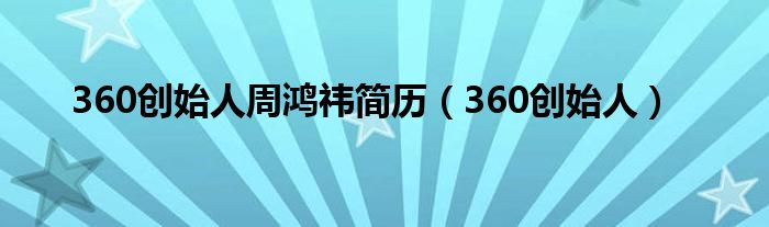 2006年3月,周鸿袆创立奇虎公司,并出任奇虎公司董事长。奇虎公司最重要的产品之一就是360安全卫士。