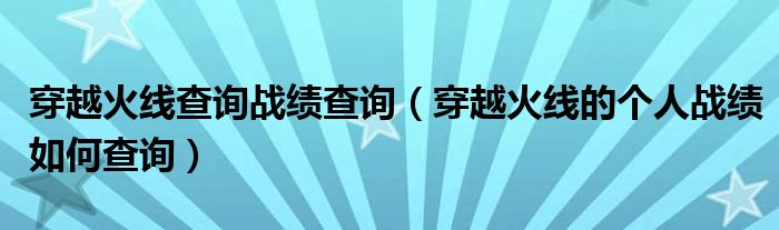 穿越火线查询战绩查询(穿越火线的个人战绩如何查询)