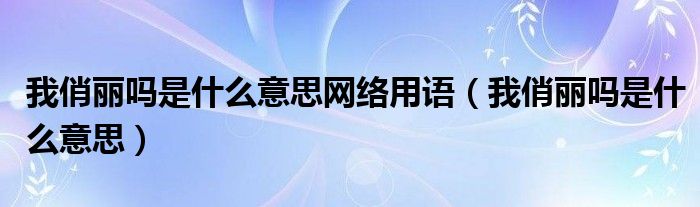 大家好,小晋来为大家解答以下问题,关于我俏丽吗是什么意思网络用语,我俏丽吗是什么意思很多人还不知道,今天让我们一起来看看吧!