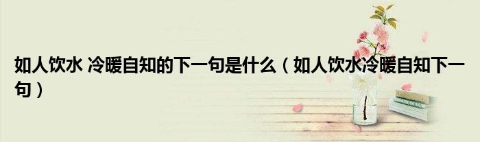 大家好,小晋来为大家解答以下问题,关于如人饮水 冷暖自知的下一句是什么,如人饮水冷暖自知下一句很多人还不知道,今天让我们一起来看看吧!
