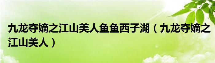 关于九龙夺嫡之江山美人鱼鱼西子湖,九龙夺嫡之江山美人这个很多人还不知道,今天菲菲来为大家解答以上的问题,现在让我们一起来看看吧!