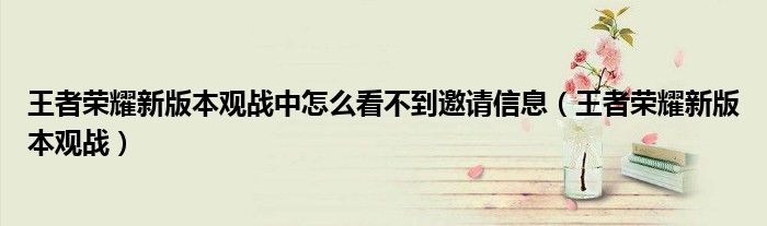 大家好,小晋来为大家解答以下问题,关于王者荣耀新版本观战中怎么看不到邀请信息,王者荣耀新版本观战很多人还不知道,今天让我们一起来看看吧!