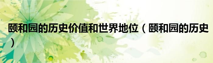 大家好,小晋来为大家解答以下问题,关于颐和园的历史价值和世界地位,颐和园的历史很多人还不知道,今天让我们一起来看看吧!