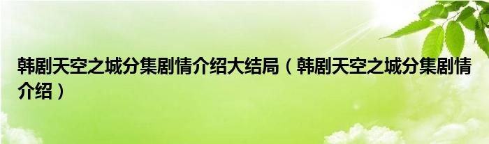 大家好,小晋来为大家解答以下问题,关于韩剧天空之城分集剧情介绍大结局,韩剧天空之城分集剧情介绍很多人还不知道,今天让我们一起来看看吧!