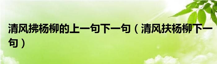 大家好,小晋来为大家解答以下问题,关于清风拂杨柳的上一句下一句,清风扶杨柳下一句很多人还不知道,今天让我们一起来看看吧!