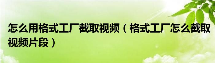 关于怎么用格式工厂截取视频,格式工厂怎么截取视频片段这个很多人还不知道,今天菲菲来为大家解答以上的问题,现在让我们一起来看看吧!